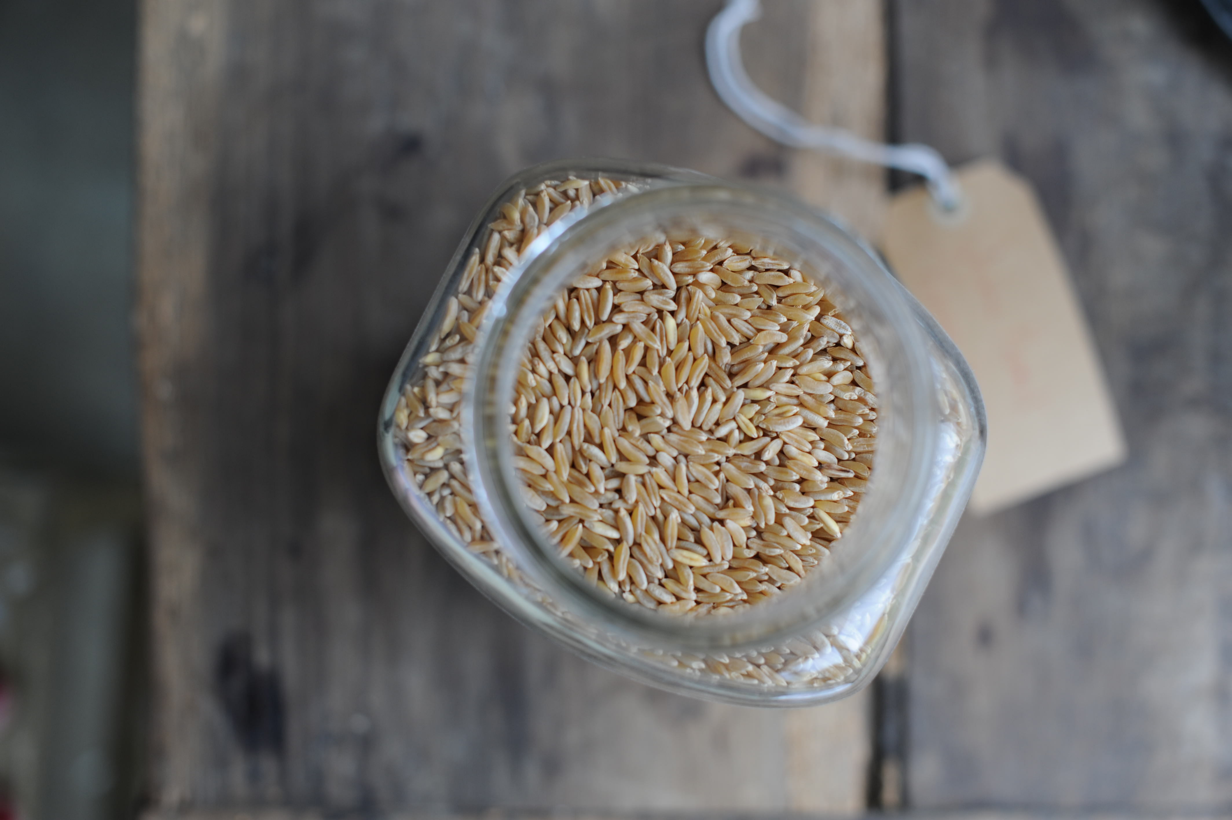 Khorasan is a tetraploid species of wheat (whereas common bread wheat is hexaploid), with similar biological properties to durum wheat. It has a very high tolerance to drought and, like other ancient wheat varieties, so it is less vulnerable to environmental stresses than modern wheat. Too much rain, though can cause fungi and disease so, unsurprisingly, it doesn’t grow well in the UK! Kamut is only grown in Montana and the nearby Canadian provinces of Alberta and Saskatchewan. The crop itself grows strikingly tall, golden ears with distinctive long, black, whiskery awns. The grains are double the size of most wheat, giving Khorasan a high thousand-kernel weight. They are also characteristically hump-shaped and so nicknamed ‘Camel’s Tooth’. The seeds are fragile and brittle, cracking easily, so harvesting must be done gently and the grains carefully treated post-harvest.